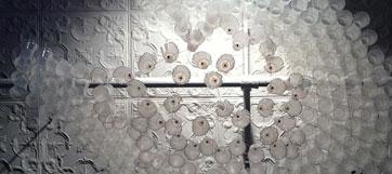 The Governor’s Cup Pavilion hovers in a cluster of trees on the northern side of the Parade Ground. Recycled plastic cups, sourced and discarded throughout the city, are supported by zip-ties from overhead cables, forming a dense knitted structure unspooling from the branches. The configuration forms an outdoor room, shimmering in the sun and echoing with breeze-driven sound.