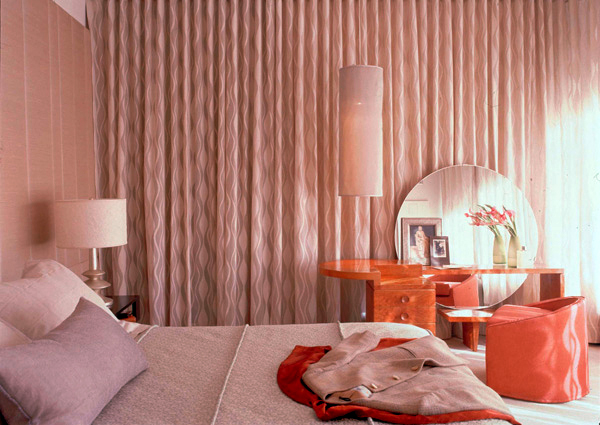 Inside the container, a variety of standard Crypton fabrics were used in unconventional ways. CDR Studio also experimented with the new possibilities inherent in Crypton fabric texture, color and porosity when selecting wall fabrics, ceiling material and upholstery. In juxtaposition to the serenity of the perimeter, CDR Studio selected and reworked vintage and custom furniture pieces with strong forms to highlight the flexibility of Crypton’s fabric.