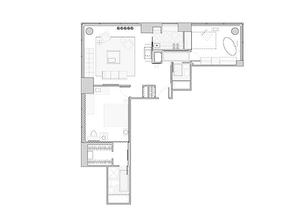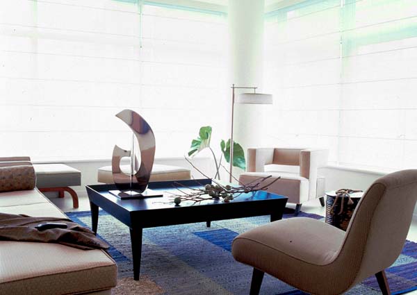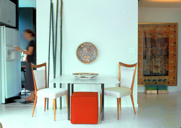 Crypton is a revolutionary fabric system created by Hi-Tex Corporation for hotel, restaurant and institutional applications. Its fabric fibers resist almost any type of stain or surface damage. The House of Crypton doubles as a part-time residence for the client and a publicly visited laboratory, highlighting a variety of textured and solid Crypton fabric installations.  Because the site occupies a corner of the 14th floor in a New York City skyscraper, the design approach explores the relationships of Crypton fabrics with both natural and artificial lighting. Natural light is carefully controlled; the perimeter of the building dematerializes, yielding a softly-lit container for contents of the showroom. The existing walls are planes that provide a neutral backdrop for the evolving collection of fabric showpieces.
