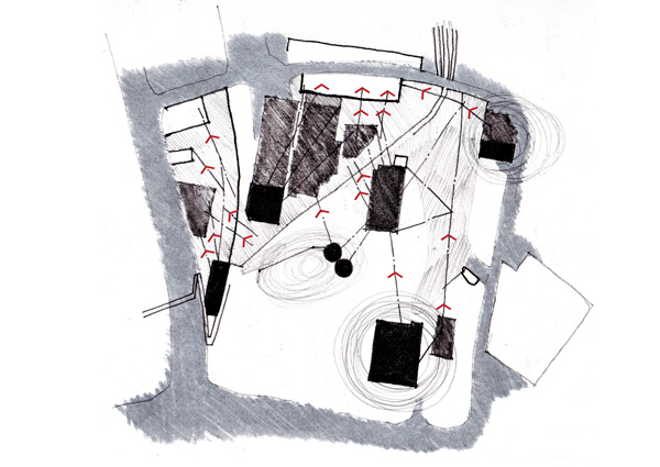 Suspended between the traces in the ground, signs of imminent activity and charged with the lightness of activities to come.