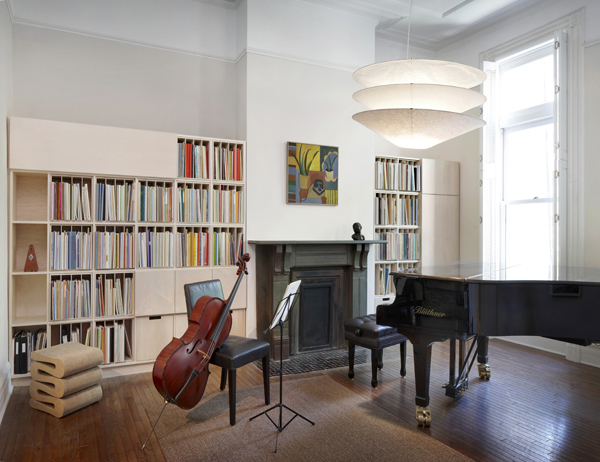 This Hoboken residence underwent a significant renovation of the existing 3,200-square-foot brick and brownstone building. The four-story building was reconfigured for optimum lighting and ventilation, allowing a sense of openness that was not present in the original floor plan. The interior central bedroom on the 4th level was converted into a dressing area with a new operable skylight for whole-house ventilation. This dressing room and walk-in closet connects the master bedroom with a secondary bedroom. All doors between the bedrooms, dressing area, and hallways include custom transom windows to allow the movement of air from room to room. Light fixtures were installed throughout, and the entire roof was replaced with a hatch to provide access from the third level. New windows were added on the three upper levels, allowing ample light to enter and brighten the space.